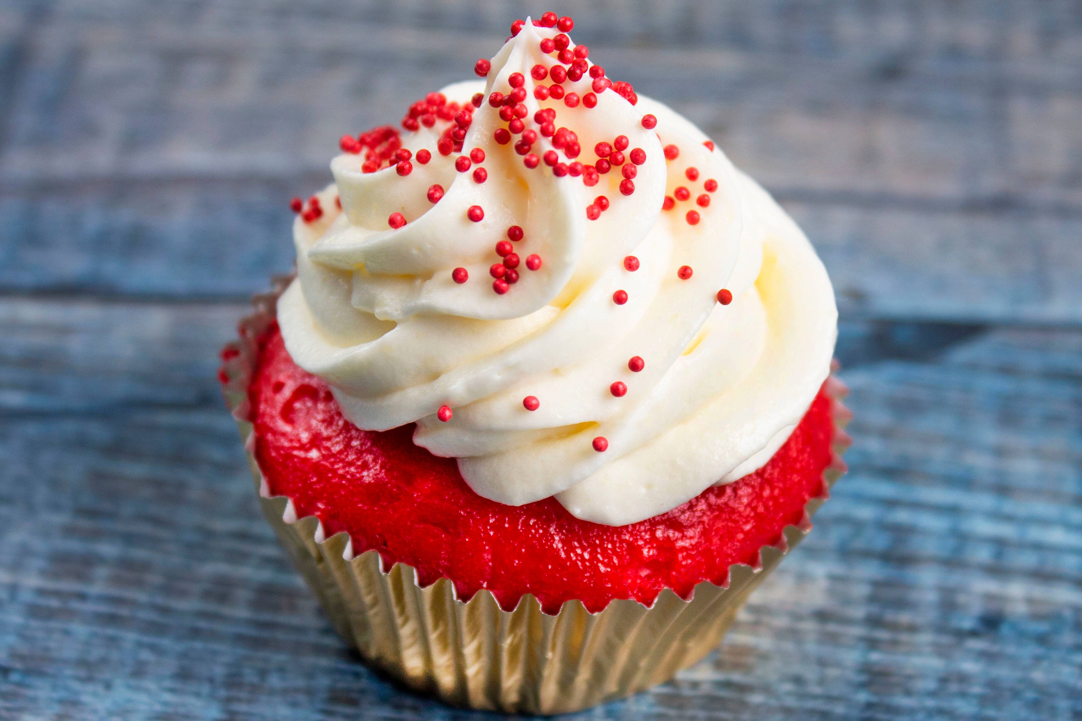 Red Velvet Kareena Cakes - Gorgeous red velvet cupcakes with tangy cream cheese frosting.